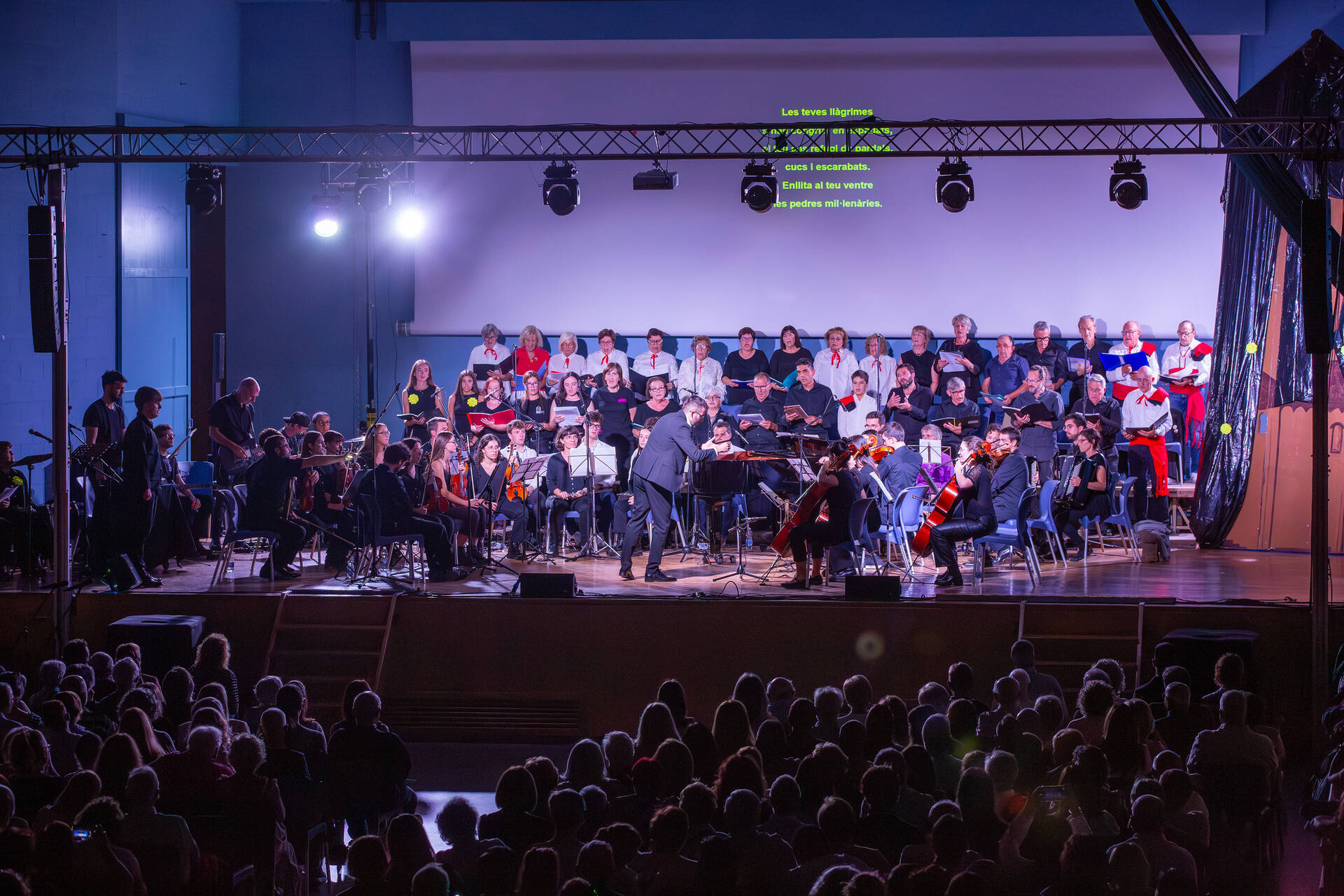 El concert-homenatge a l’Associació d’Amics de Sant Pere de Ponts en motiu de la celebració del seu 50è aniversari va omplir la Sala 1 d’Octubre amb la cantata “Per sempre serem”, dirigida pel músic i compositor pontsicà, Xavier Palà.