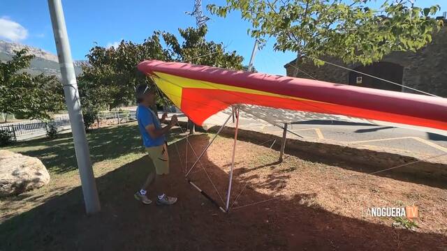 És el Joel Mirón, responsable de l'empresa Zenith Aventura i l'únic professor d’ala delta que ofereix classes a Catalunya, i un dels dos únics que ho fa en biplaça a nivell d'Espanya. Ho fa, concretament, en un dels espais considerat com a estratègics per practicar aquest esport, a Àger. Ell des de ben petit que ha practicat l’ala delta, i per això vol treballar per tal que es mantingui viva i garantir-ne el relleu.