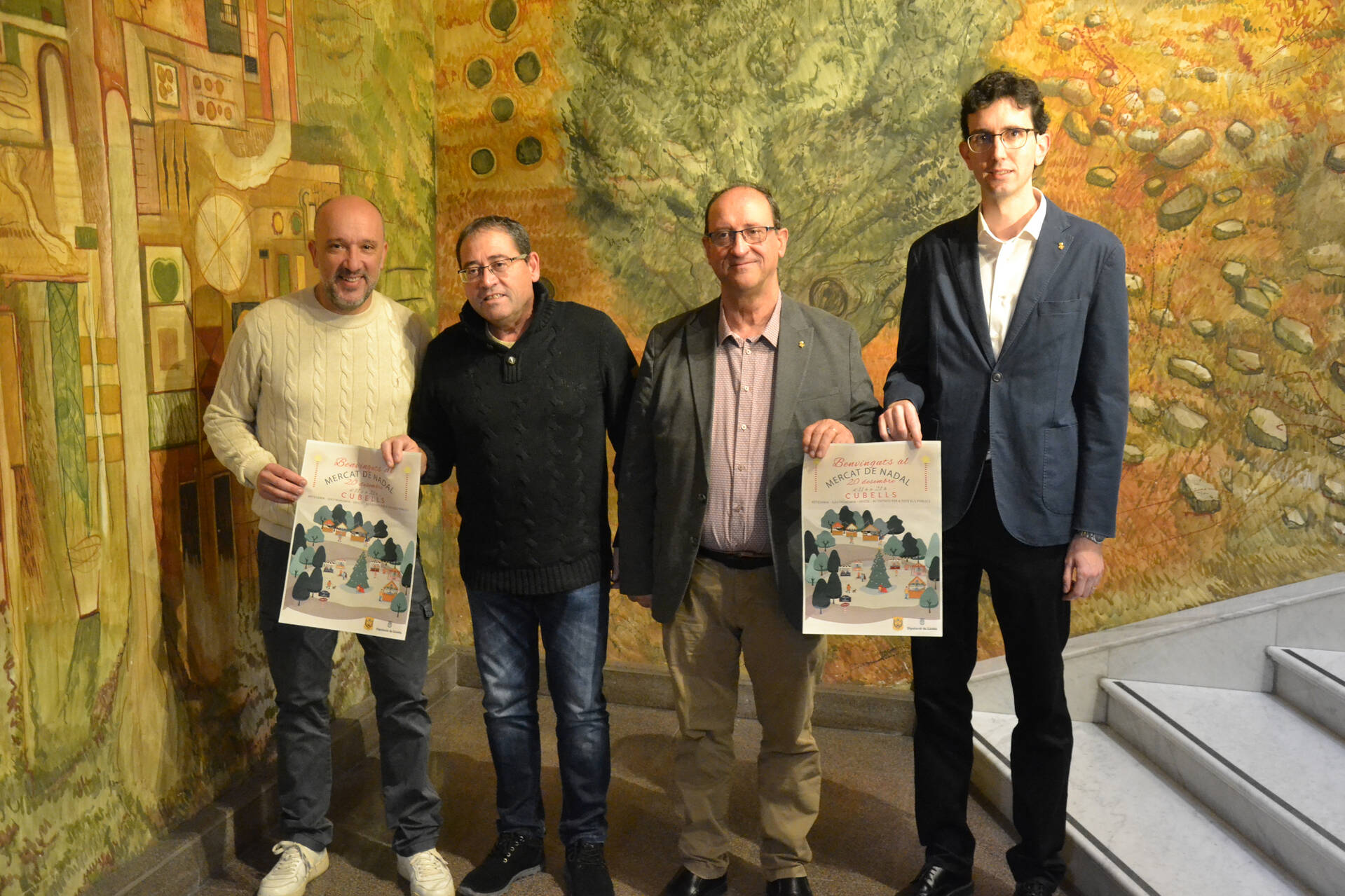El diputat Fermí Masot; l’alcalde de Cubells, Sebastià Boixadera, i el regidor d’Economia, Joventut, Turisme i Patrimoni, Josep Camps, han presentat aquest dimecres la tercera edició del Mercat de Nadal de Cubells, que tindrà lloc el dissabte, 20 de desembre, entre les 11.00 i les 21.00 hores amb la presència de 25 paradistes. A l’acte també ha assistit el diputat Marc Solanes.